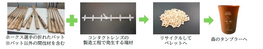 アサヒビール株式会社及び福岡ソフトバンクホークス株式会社と連携し、みずほPayPayドーム福岡での野球観戦において、ホークス選手の折れたバットを活用したタンブラーで球場の使い捨てプラカップを削減する取り組みで、2023年から実施しています。