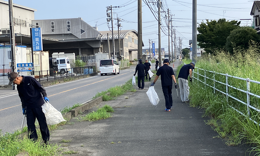 - 本社周辺の美化活動の継続。月に1度早朝実施し、地元企業としてつながりの深い地域づくりに貢献します。
