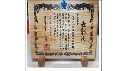 これらの取組により自動車、重機機材等の燃料使用量を削減することができ、この取組が評価され「福岡県エコ事業所表彰 自動車燃料使用量削減部門」で最優秀賞を受賞しました。